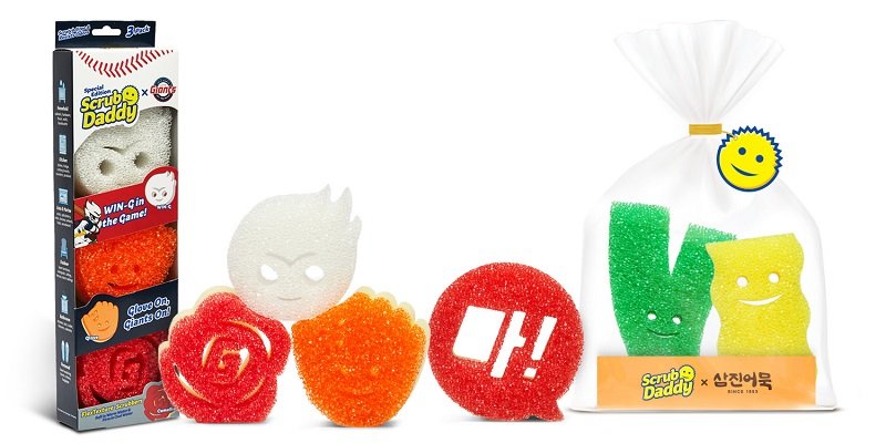 미국에서 가장 핫한 청소용품 브랜드 ‘스크럽 대디’는 롯데 자이언츠와 손잡고 한정판 굿즈는 물론 백화점 팝업 스토어까지 열었다. 롯데 자이언츠 마스코트 모양, 동백꽃 모양, 야구 글러브 모양 등 팬들의 마음을 '저격'할 수세미는 품절대란 중. 팝업 스토어에서는 부산 출신 브랜드 삼진어묵 버전의 수세미도 함께 만나볼 수 있다.