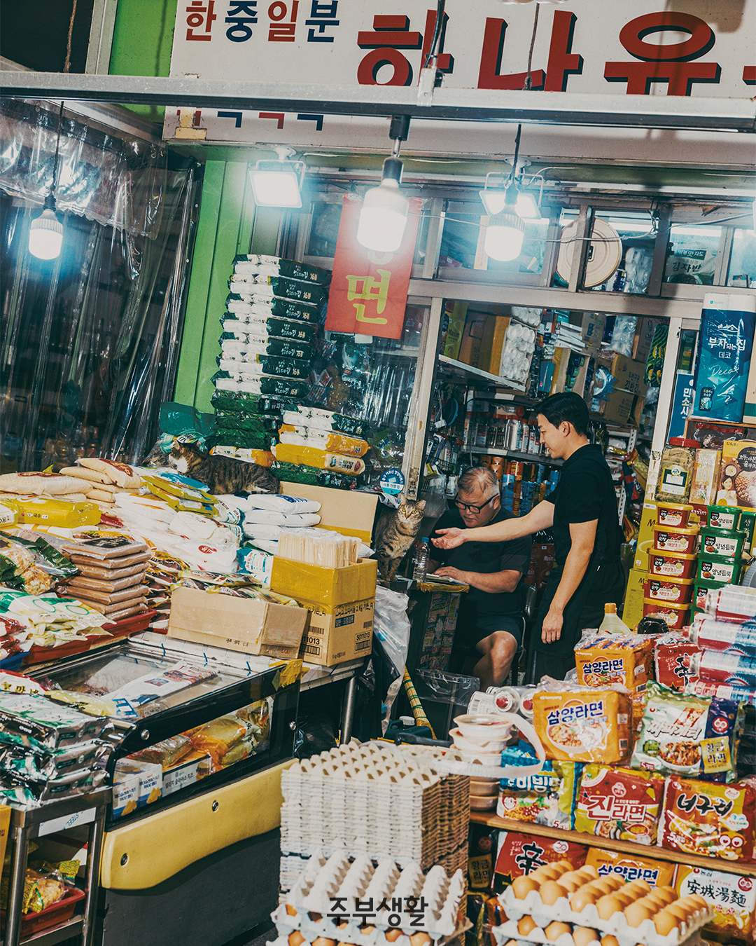 아, 이런 가게도 있나 했어요. 처음 먹어본 음식이 신기하기도 했고요. 그런데 시간이 지날수록 주변에서 다들 맛있다고 하고 자꾸 먹다 보니까 괜찮더라고요. 외국인 손님도 많이 보여요. 라까예처럼 손님이 많이 오는 가게가 있으면 우리 가게 물건을 사주는 손님이 아니라도 시장에 활력이 생겨서 좋아요. 시장은 분위기도 중요하니까요. 젊은 사람들이 열심히 잘하려고 하는 모습을 보면서 우리도 열심히 해야겠구나 하는 마음도 다시 생기고요.