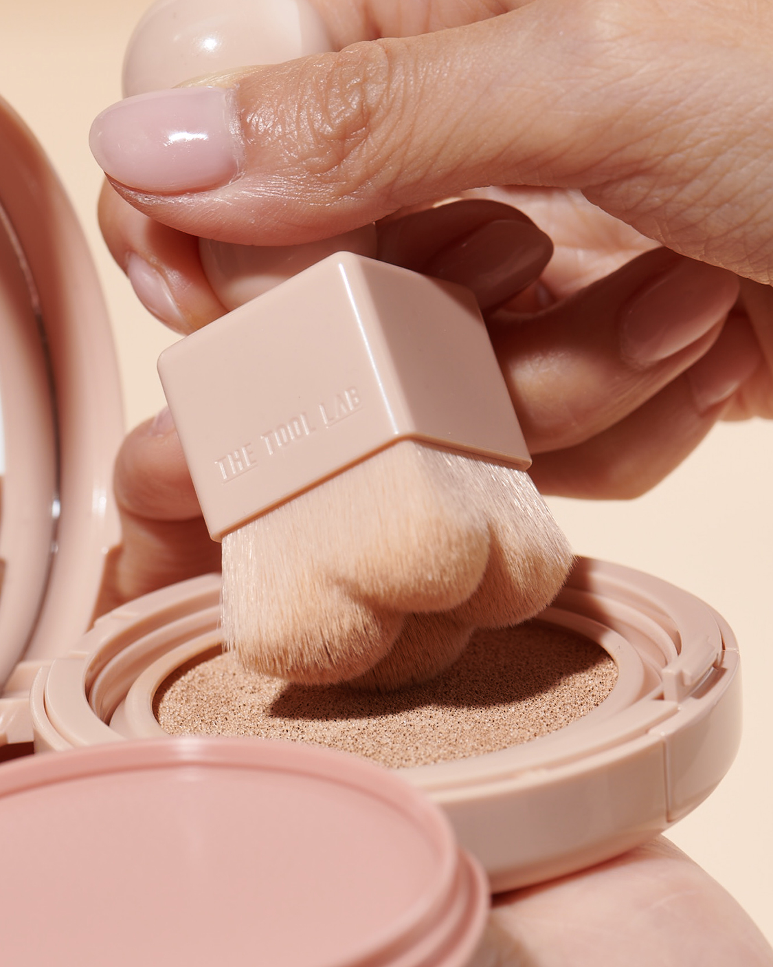 더툴랩 최초의 쿠션 전용 브러쉬로 4각도 커브 핏과 4만 5천개의 미세모로 설계된 듀얼 브러쉬입니다. 피부에 스탬프 하듯 톡- 찍고, 펴고, 두드리면 터치가 쉽지 않은 모공의 사각지대까지 빈틈없이 초밀착시켜 줍니다.