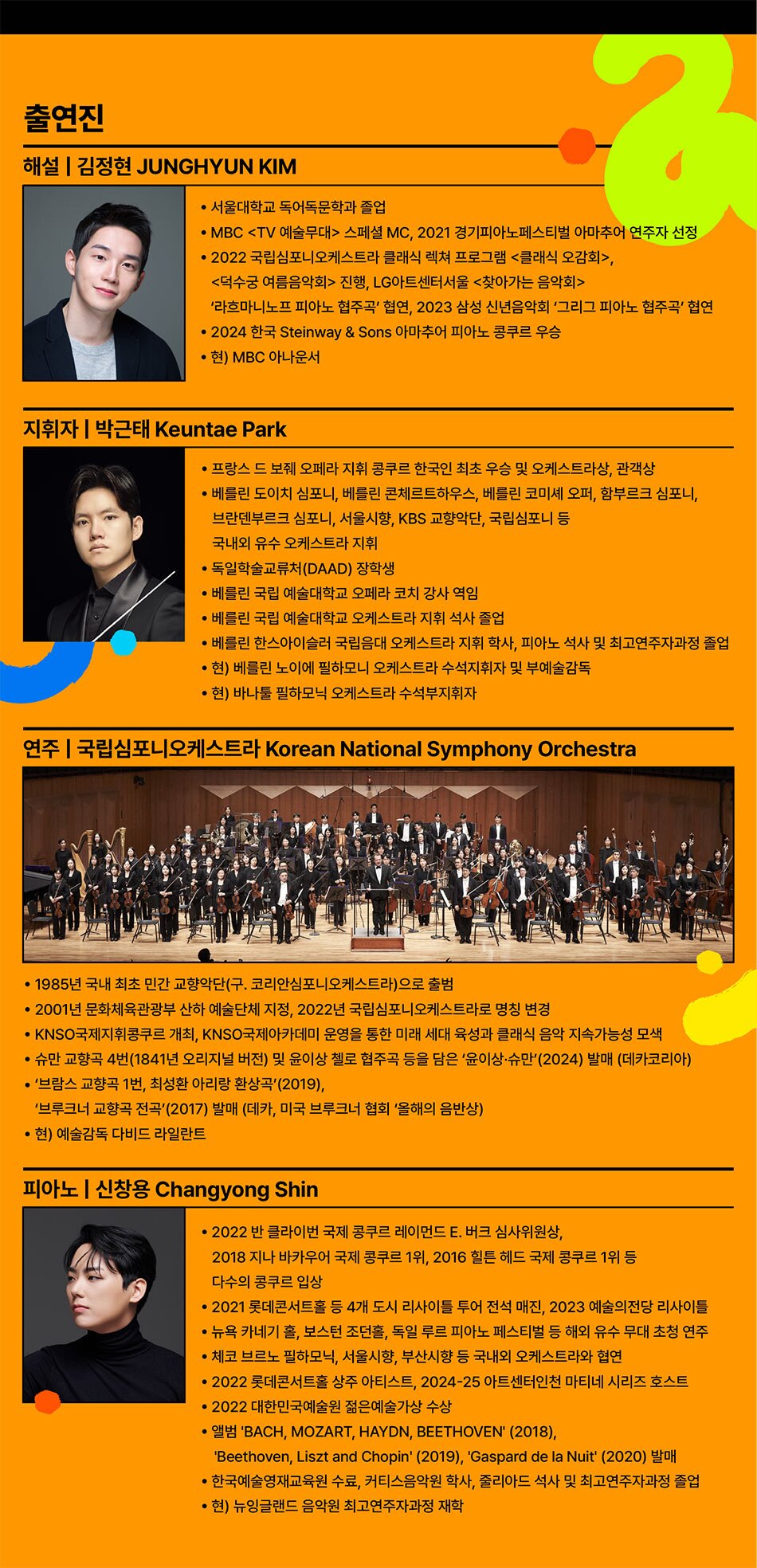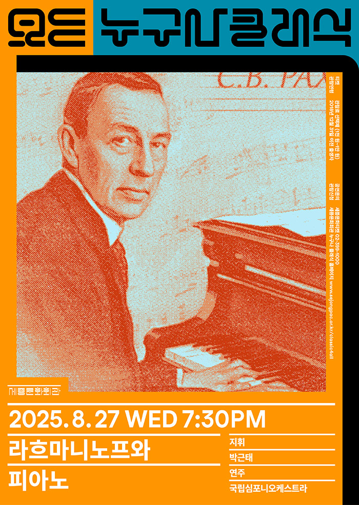 한국인이 가장 사랑하는 라흐마니노프의 대표작, 피아노 협주곡 제2번을 김정현 아나운서의 해설과 국립심포니 오케스트라의 연주로 만나볼 수 있다. 특이하게도, 관람료를 관객이 직접 선택하는 ‘관람료 선택제’가 이 공연에 도입됐다. 딱딱한 클래식 공연에 대한 기존의 틀을 깨고 색다른 공연 관람 경험을 선사할 것.