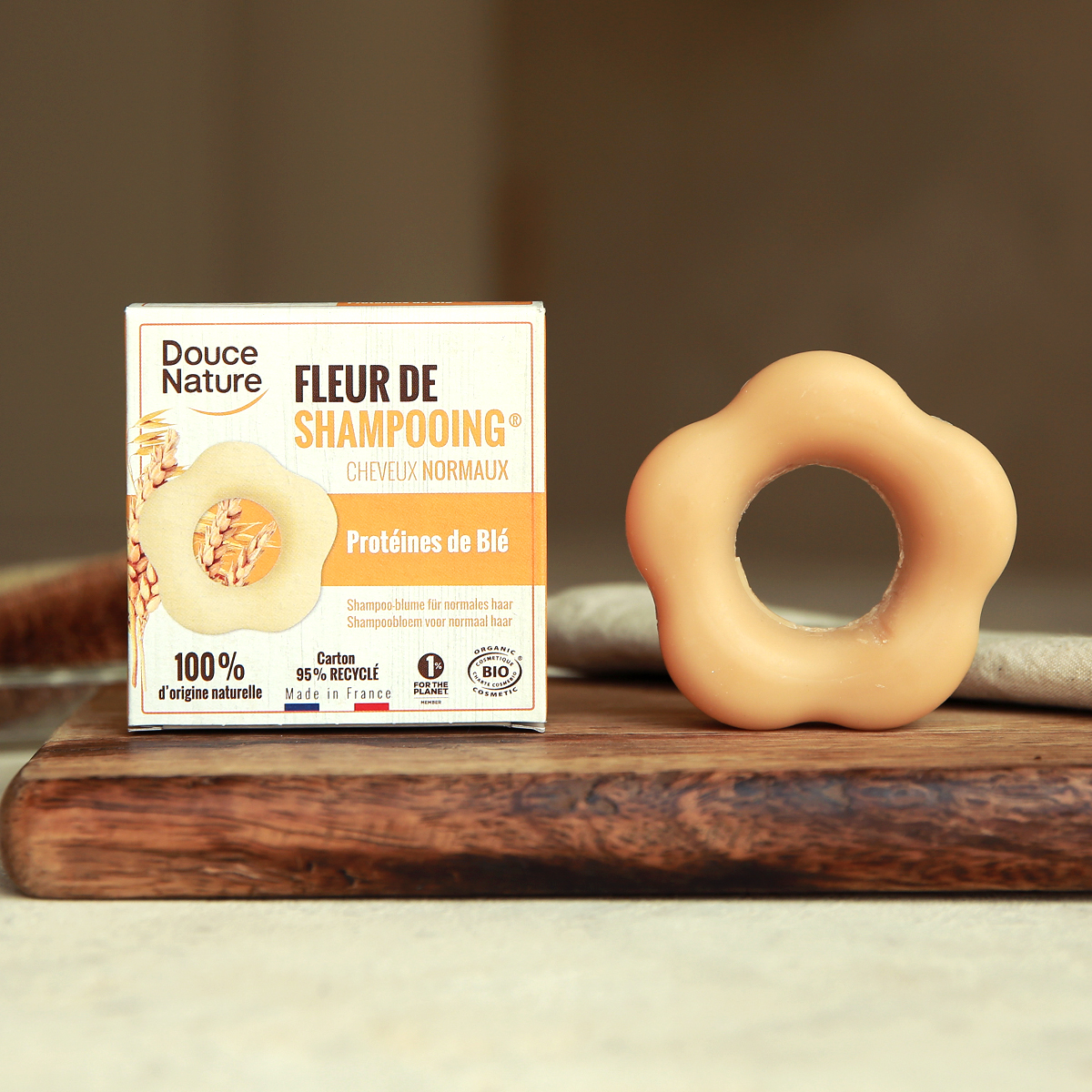 프랑스 유기농 전문기업 에키바이오 그룹의 코스메틱 브랜드인 두스나뚜르의 샴푸바. 건성용은 아르간 오일, 지성용은 녹색 점토 등 모발 타입에 따라 다른 재료를 이용해 만든 점이 특징이다. 꽃 모양의 비누 쉐입은 샴푸 과정에 즐거움까지 더해준다.