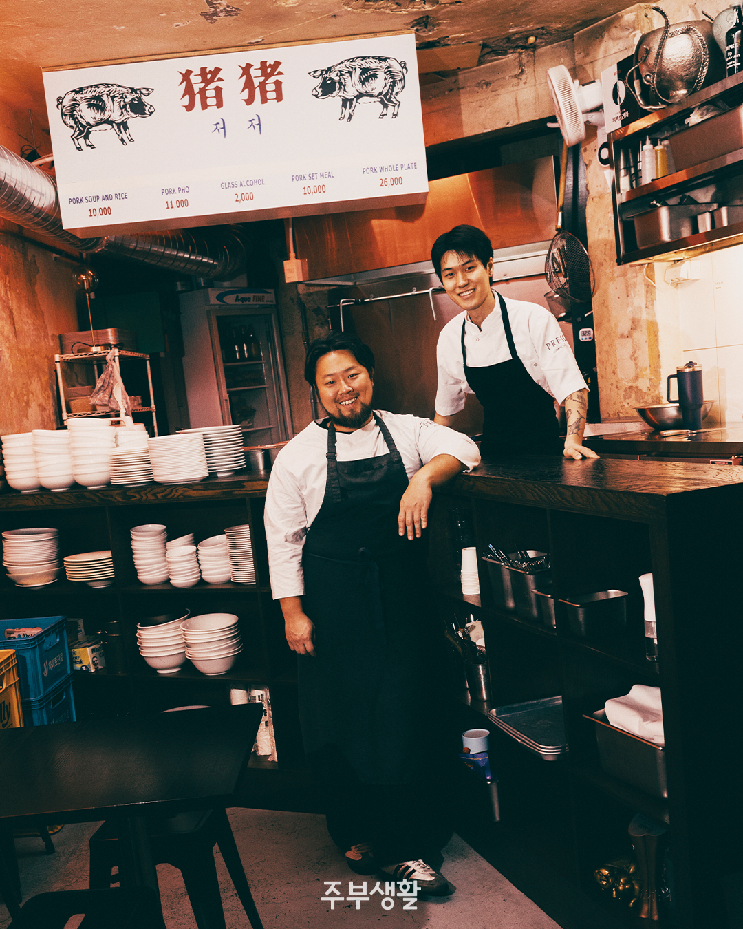 일찌감치 요리사의 길을 걸어오며 실력을 쌓았고 자신도 있었지만, 이태원 참사와 계엄, 투자자의 사업 실패 같은 어려움이 잇달아 찾아와 힘든 시기를 겪었던 그가 찾은 돌파구는 시장이었다. 이름난 노포보다 맛있는 돼지국밥을 만들 수 있다는 자신감 하나로 문을 열었고, ‘더티코리안’이라는 이름으로 매일같이 짧은 릴스를 찍어 올리기 시작했다. 인현시장에 자리한 ‘저저’에 가면 점심에는 이준호 셰프의 노하우가 담긴 돼지국밥을, 저녁에는 어느덧 5만 명이 넘는 팔로어를 보유한 그의 릴스에 나올 법한 이국적인 풍미의 요리를 맛볼 수 있다.