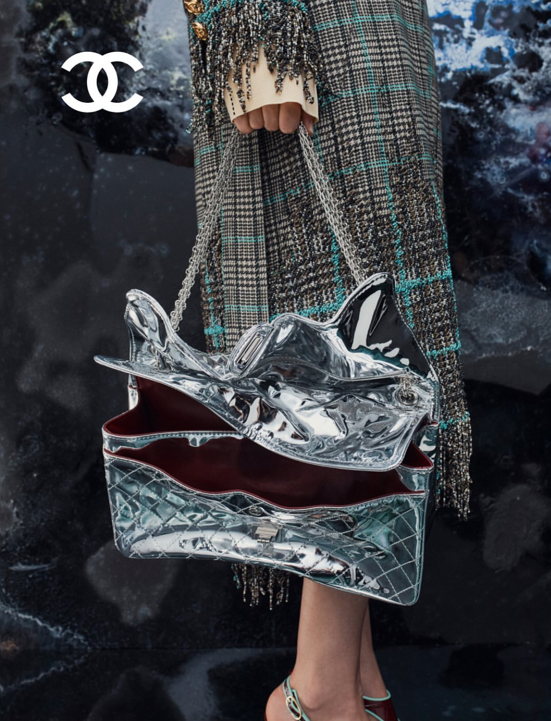 샤넬은 오래된 브랜드의 상징인 2.55 백을 픽포켓 백으로 재해석했다. 이번 시즌 런웨이의 가장 핫한 이슈이기도 했다. 와이어를 넣어 열린 플랩을 고정한 형태가 한 폭의 아트피스 같다.