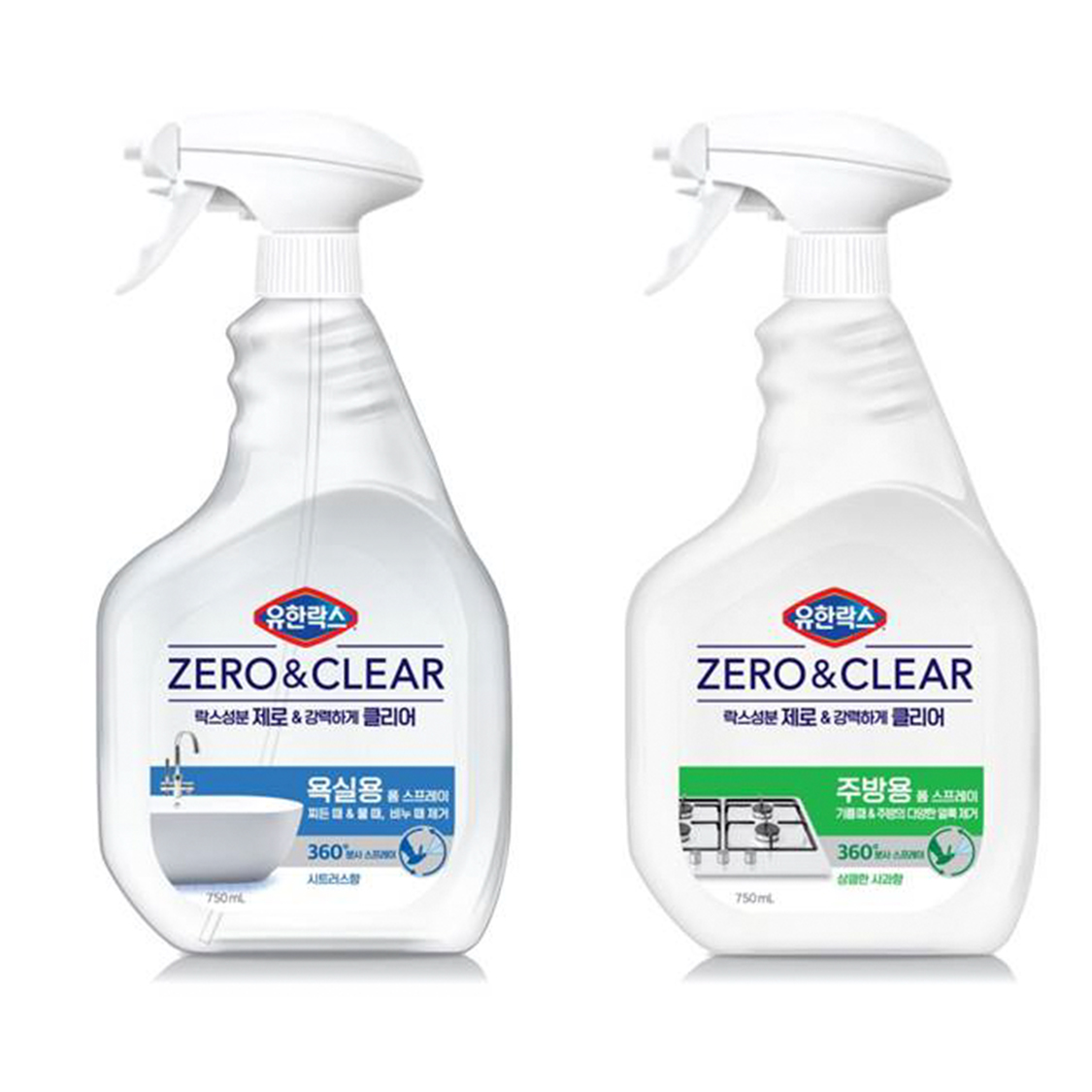 락스 성분 ZERO! 냄새 부담 없이 집안 곳곳을 강력히 세정해 주는 유한클로락스의 제로&클리어로 얼룩과 오염 없는 깨끗한 공간에 상쾌한 향기까지 더해보세요!