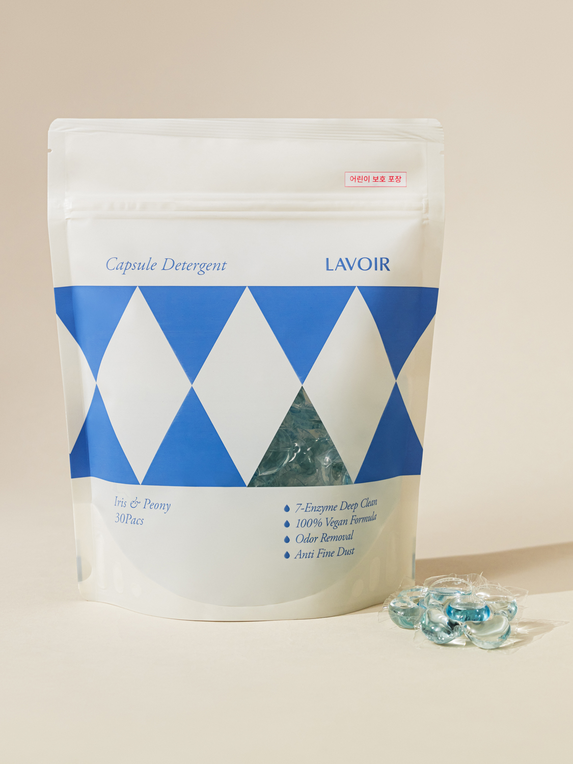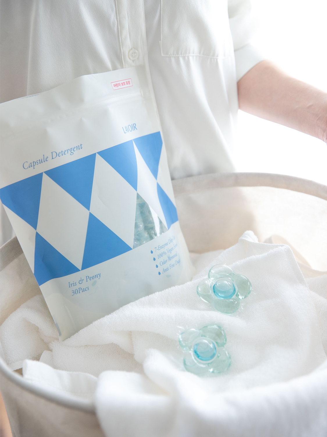라브아의 실내건조 캡슐세제는 빨래의 퀄리티를 좌우하는 세척과 탈취, 섬유 유연 효과를 작은 캡슐 하나에 모두 담았습니다. 귀여운 꽃 모양의 캡슐 하나에 ‘덴마크 7종 파워 효소’가 함유되어 세탁물에 묻은 땀과 피지, 생활 얼룩 등의 오염을 말끔하게 씻어내요.