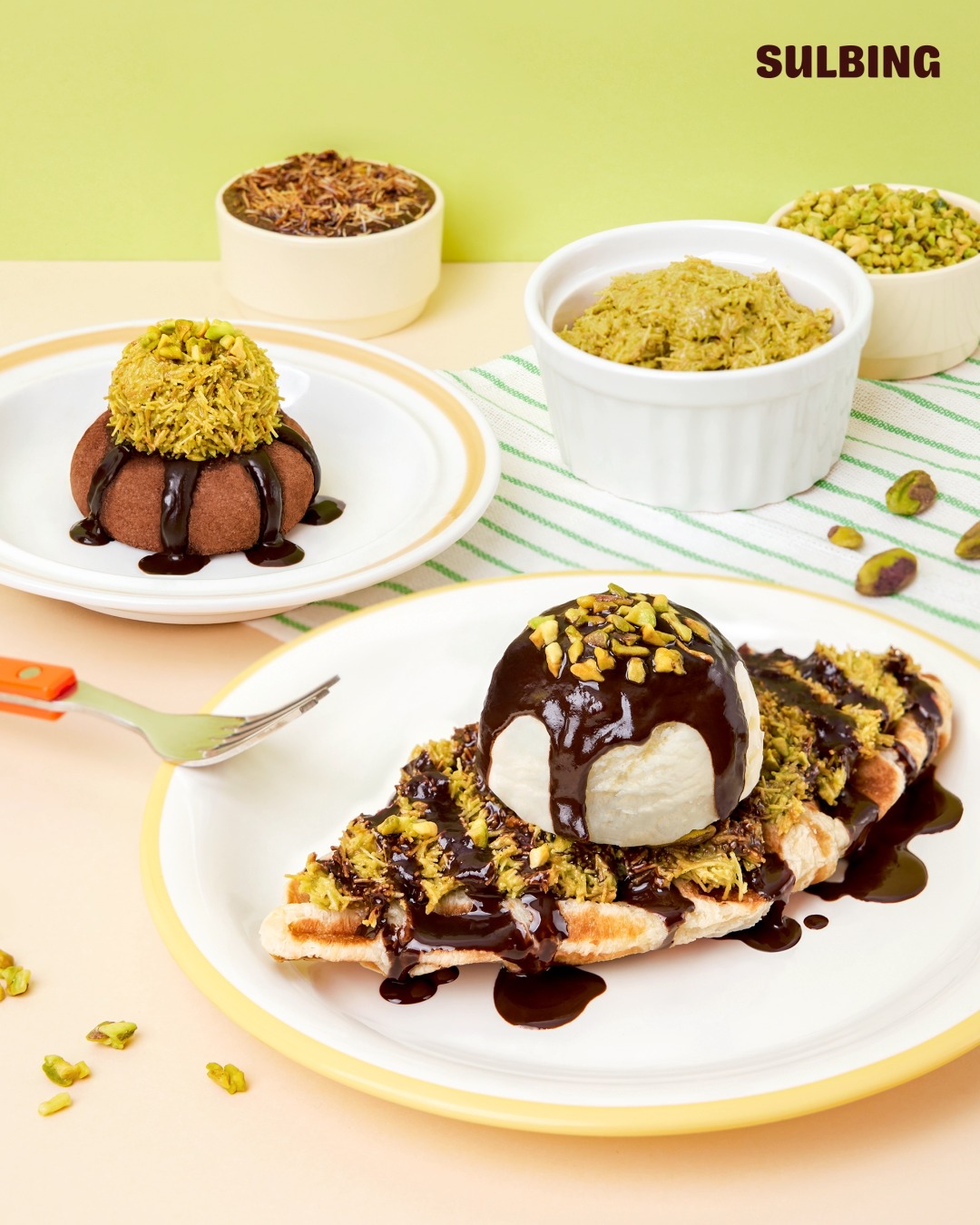 설빙도 처음 출시한 '두바이초코설빙'이 누적 판매 100만개를 돌파하자 두바이 초코 디저트 3종을 신상으로 내놨다. 두바이 찹쌀떡과 생딸기 두바이 찹쌀떡, 두바이 크로플이다. 빙수에 디저트까지 주문하면 압도적인 두바이 초코 비주얼을 완성할 수 있다!
