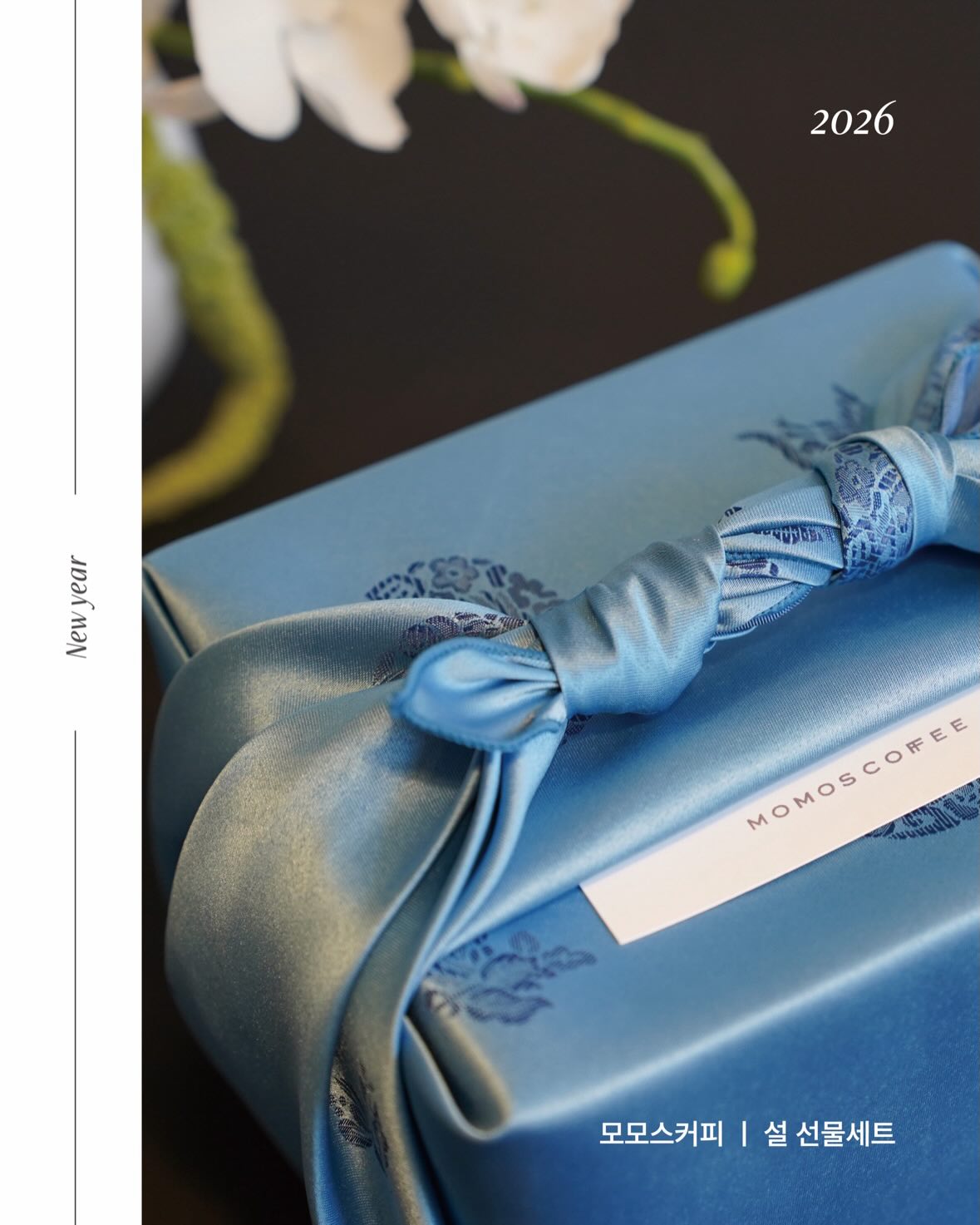 2만원대의 가격으로 부담스럽지 않게 마음을 전할 수 있는 모모스커피의 드립백 선물세트. 전통 보자기를 야무지게 매듭지어 포장한 모습에서 정갈함마저 느껴진다. 다른 도구 없이 어디서나 커피를 내려 마실 수 있어 실용성도 챙겼다.