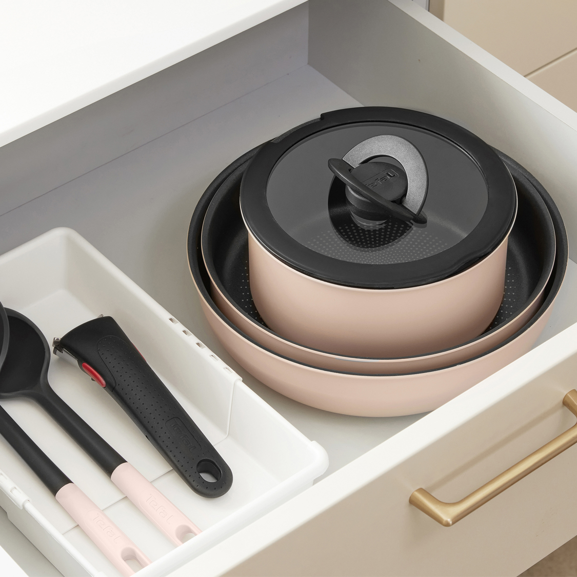 매직핸즈의 마법은 여기서 끝이 아닙니다. 손잡이 없는 팬은 세척이 훨씬 쉽기 때문인데요. 식기세척기 사용도 가능하며, 주방 수납장에도 팬을 겹쳐 차곡히 쌓아 올리면 공간을 더 쾌적하게 쓸 수 있어요. 요리와 플레이팅, 음식을 먹을 때뿐만 아니라 세척과 마무리까지 생각한 테팔 매직핸즈를 주부생활 체험단을 통해 만나보세요.