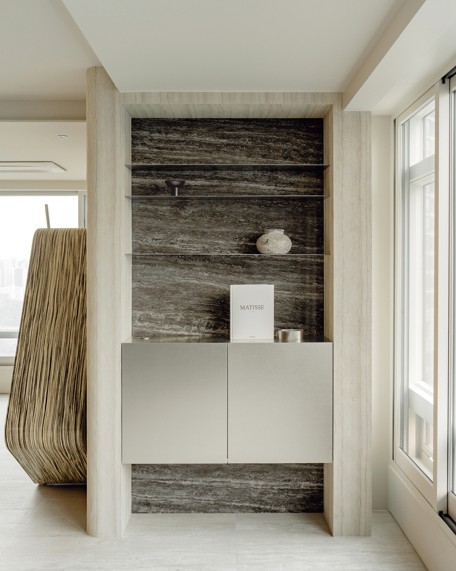 맞아요. 제약이 오히려 흥미로운 결과를 만들어내기도 해요. 아파트는 구조적 한계가 명확하기 때문에 그 안에서 어떻게 풀어낼지 더 고민하게 되거든요. 예를 들어 층고가 낮은 집에서는 천장을 노출해 공간의 분위기를 바꾸거나, 주방과 방의 위치를 바꿔 전혀 다른 생활 동선을 만들기도 해요. 또 철거할 수 없는 하부 내력벽을 활용해 윈도 시트 같은 새로운 공간을 만들기도 하고요. 이런 작업을 통해 라이프스타일과 취향이 더 뚜렷하게 드러나는 공간으로 재탄생하는 집이 많아요.